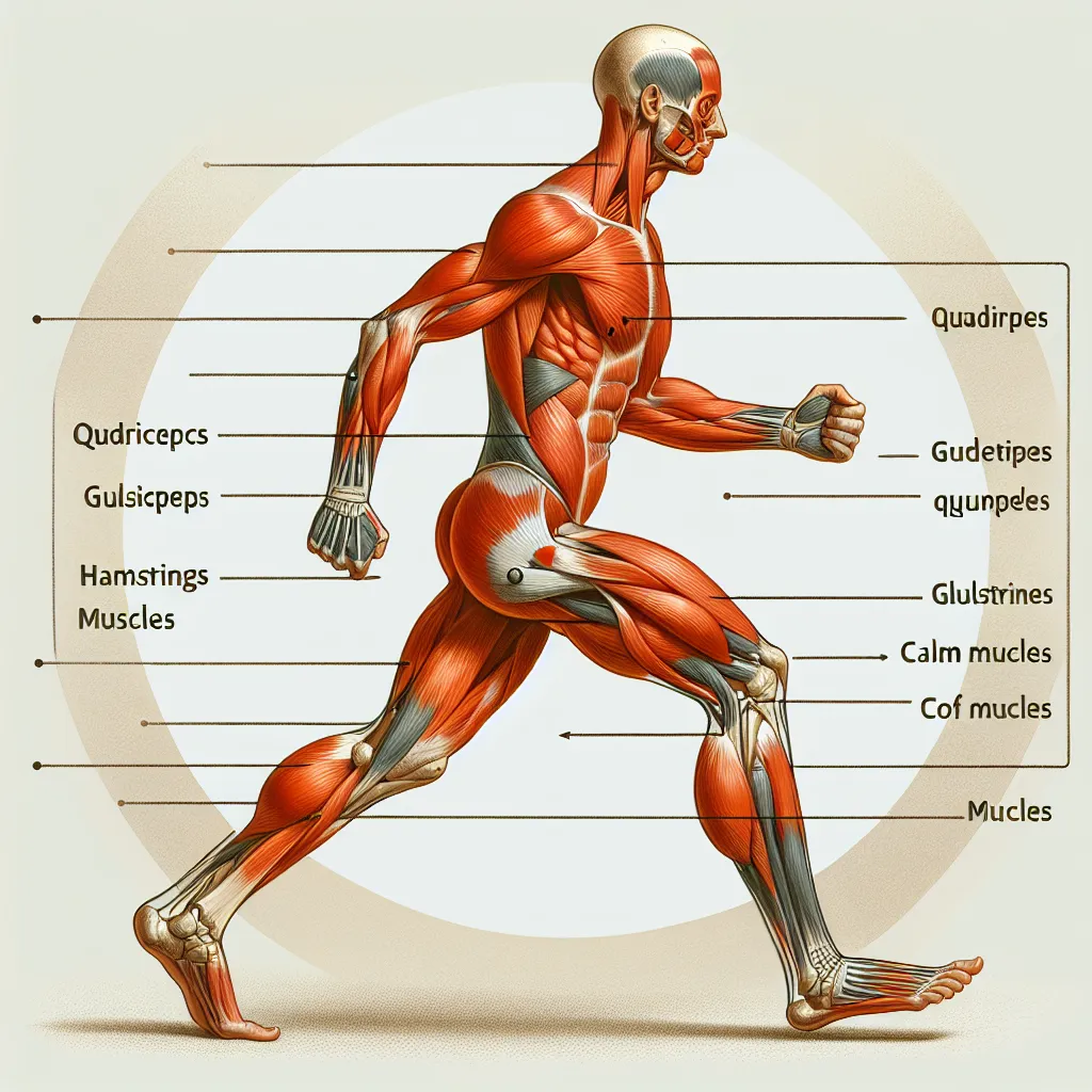 - Квадрицепсы: Эти мышцы расположены на передней части бедра и играют ключевую роль в разгибании колена, что необходимо для продвижения вперед.